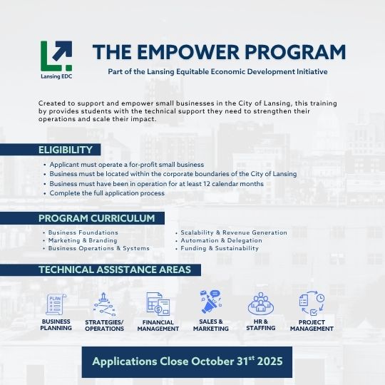 Empower alumni represent a diverse cross-section of Lansing’s entrepreneurial community, and many go on to access capital, expand operations, or open new locations. With an emphasis on sustainability and long-term impact, Empower graduates are not just growing their businesses—they're helping shape a more vibrant and inclusive local economy.